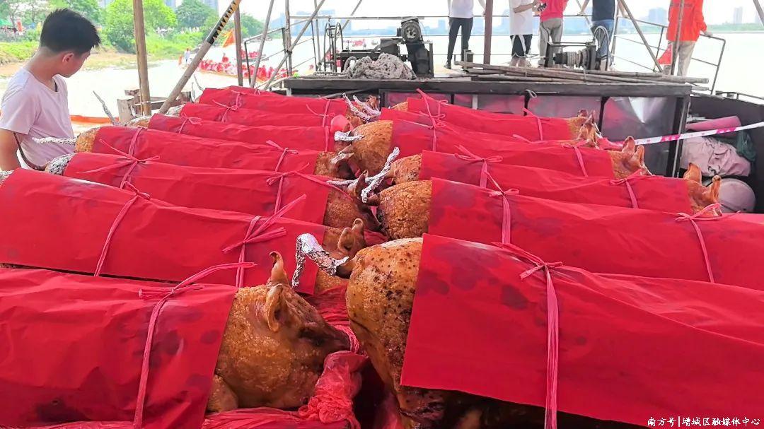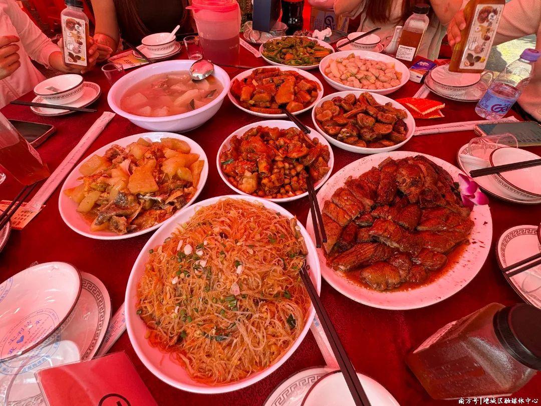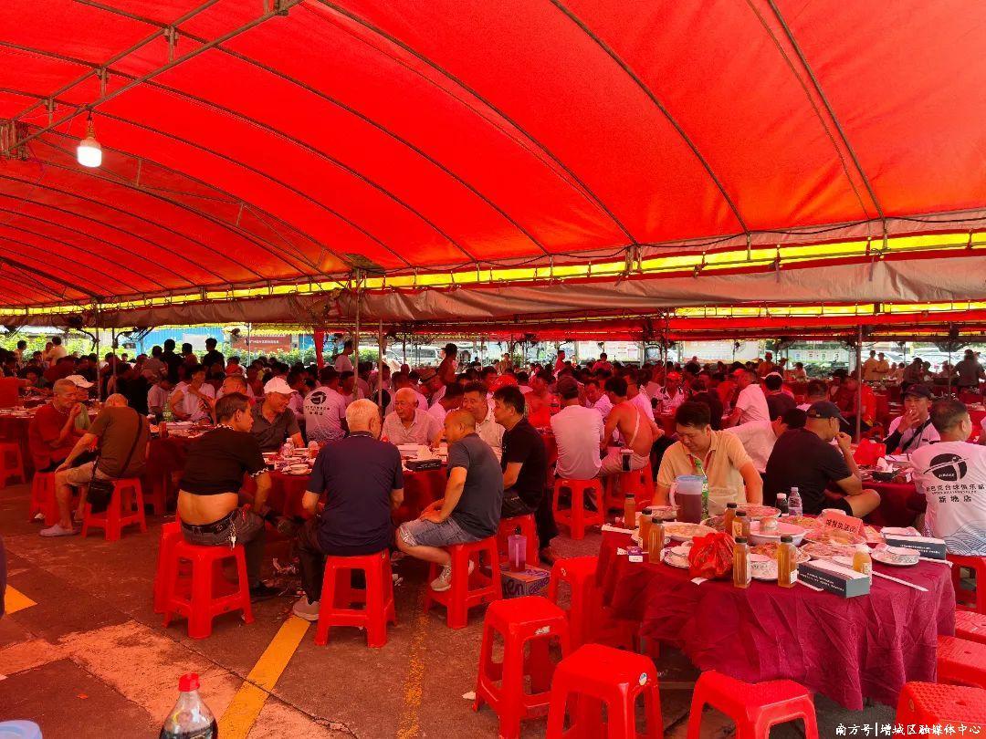 新塘龙舟景不仅是体育盛会,更是乡村情感交流的重要纽带。中午时分,作为东道主的甘涌村、东华村、群星村、坭紫村等邀请外地龙舟队上岸共叙乡情,围坐品尝地道的龙船饭。在甘涌村,村民还延续着向每家每户派发龙船饭的传统,寓意风调雨顺、五谷丰登、事业兴旺。