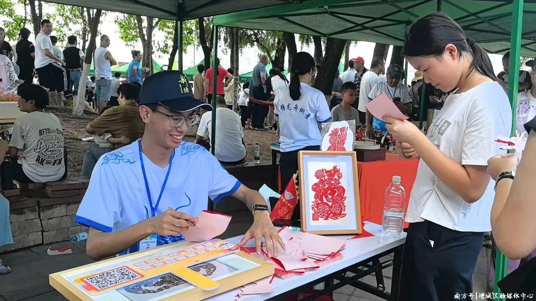 值得一提的是,新塘镇在东江边精心打造了一条独具特色的非遗长廊。现场设置了互动摊位,新塘鱼包、剪纸、饼印制作、小龙舟制作、酥皮油角等多个增城区非遗项目以活态传承的方式展现地方文化瑰宝。