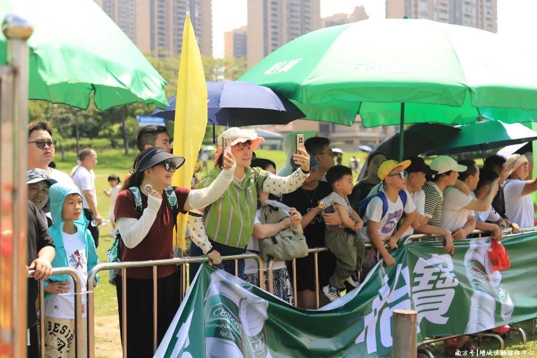 尽管天气炎热,但丝毫阻挡不了市民和游客的热情。一大早,江边便挤满了围观的人群,有人举起手机拍摄,有人拿着望远镜远眺,还有人干脆站在高处,只为捕捉最精彩的瞬间。人群中不乏专程从市区赶来的游客,他们被新塘龙舟景的热闹氛围所吸引,纷纷感叹“比想象中更震撼”。